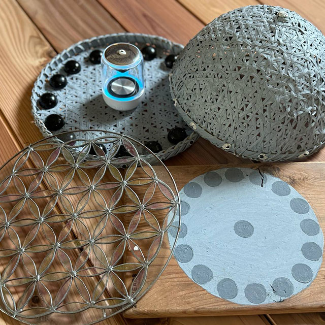 テラヘルツの100万倍の微細振動(エクサヘルツ波)を放射し、空間を整えるエクサレインボーのスピーカー。